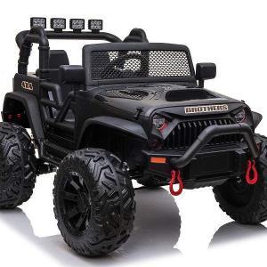 Elektro Auto Kinderfahrzeug Offroad mit 24V Akku und 2x200W Motoren “Schwarz” 2,4Ghz+Ledersitz+EVA