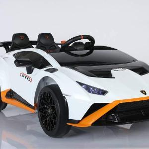 Elektro Kinderauto “Lamborghini Huracan STO” – mit Lizenz – 12V7A Akku, 2 Motoren- 2,4Ghz Fernsteuerung, MP3, Ledersitz+EVA-Weiss