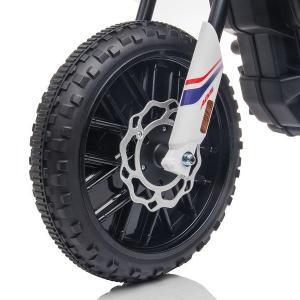 Ihr Kind kann selbst mit Lenker und Gaspedal das Motorrad kontrollieren. Dank 2 x Elektro-Motoren und 12V4Ah Batterie hat er genug Kraft um die Kinder mit bis zu 25 kg tragen zu können. Vorne sind LED-Scheinwerfer eingebaut.