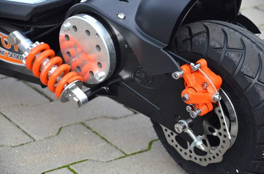 Es verfügt über ein Vorder- und Hinterradbremssystem für Ihre Sicherheit. Gas ist Stufenlos regulierbar. Es ist sehr einfach und schnell faltbar. Es verfügt luftgefüllte Räder und 2 Stoßdämpfer.