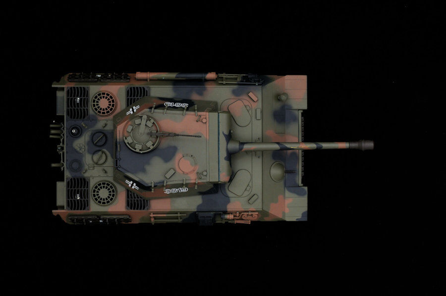 - Fernbedienung: Vorwärts / Rückwärts normal und HIGH SPEED, Vorwärts Links oder Rechtsdrehung, Rückwärts Links oder Rechtsdrehung , Kanone heben und senken, Geschützturm um 320° drehbar (160° rechts / 160° links), Munitionsabschuss auch während der Fahrt