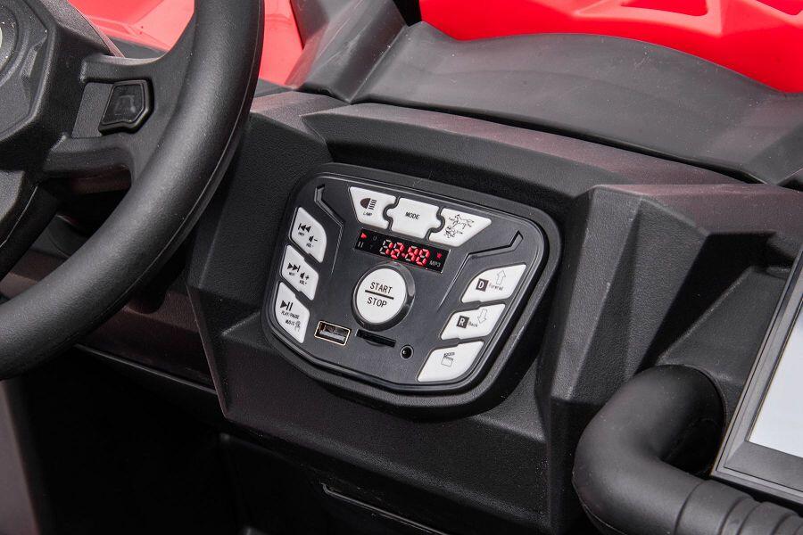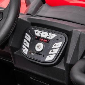 Das Fahrzeug ist fü r Kinder konzipiert und verfü gt wahlweise ü ber ein Lenkrad und ein Gaspedal fü r die Selbstbedienung oder eine 2,4-GHz-4-Wege-Fernbedienung fü r Erwachsene. Der MP3-Anschluss ermö glicht eine individuelle Soundregulierung. Mit seinen vier 24V Elektromotoren bietet das Fahrzeug ausreichend Leistung, um Kinder bis zu einem Gewicht von 60 kg zu transportieren. Des Weiteren sind Scheinwerfer integriert.