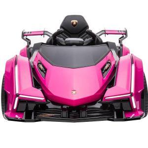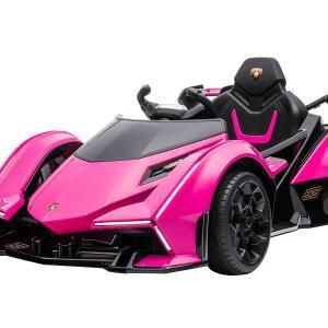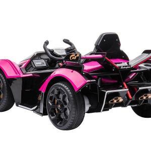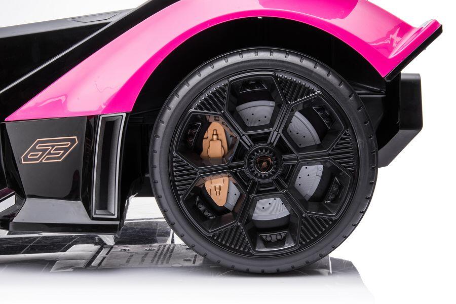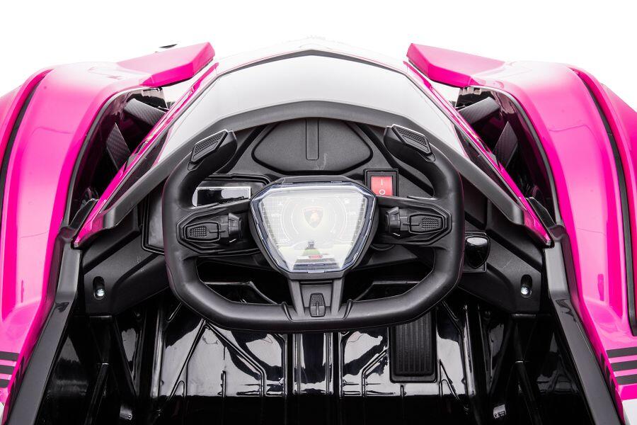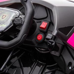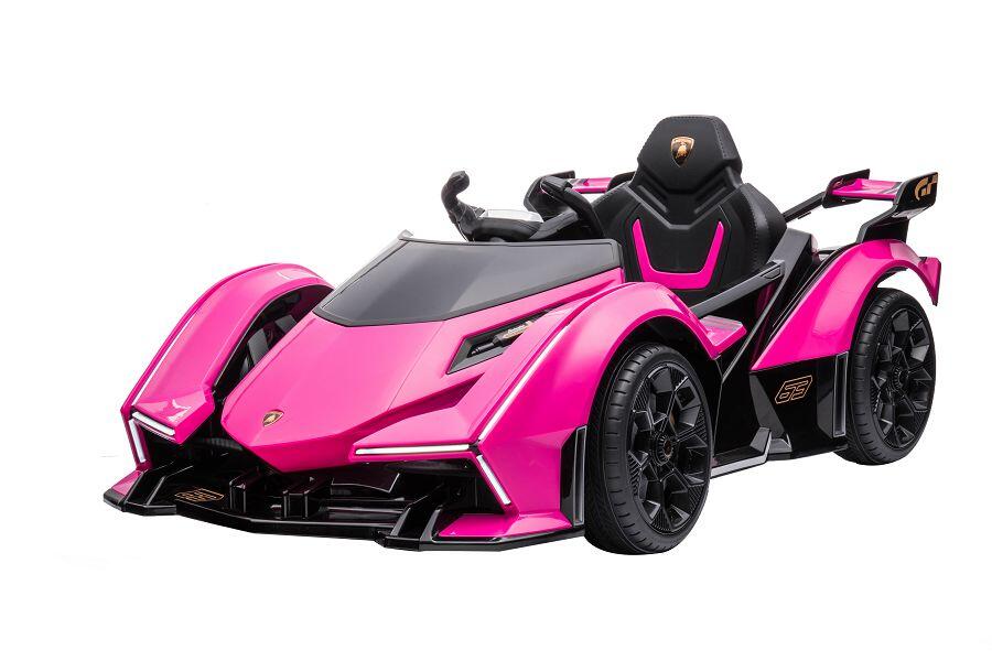 Kinderfahrzeug – “Lamborghini V12 Vision Gran Turismo” – mit Lizenz – 12V7AH, 2 Motoren- 2,4Ghz Fernsteuerung, MP3, Ledersitz+EVA-Pink/Rosa
