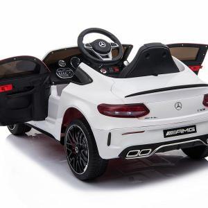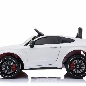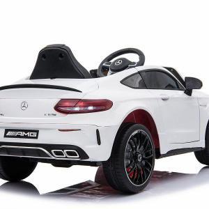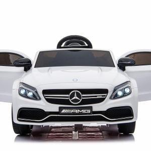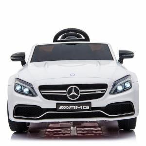 Kinderfahrzeug – Elektro Auto “Mercedes C63 AMG” – lizenziert – 12V7AH Akku + 2,4Ghz+Ledersitz+EVA -Weiss